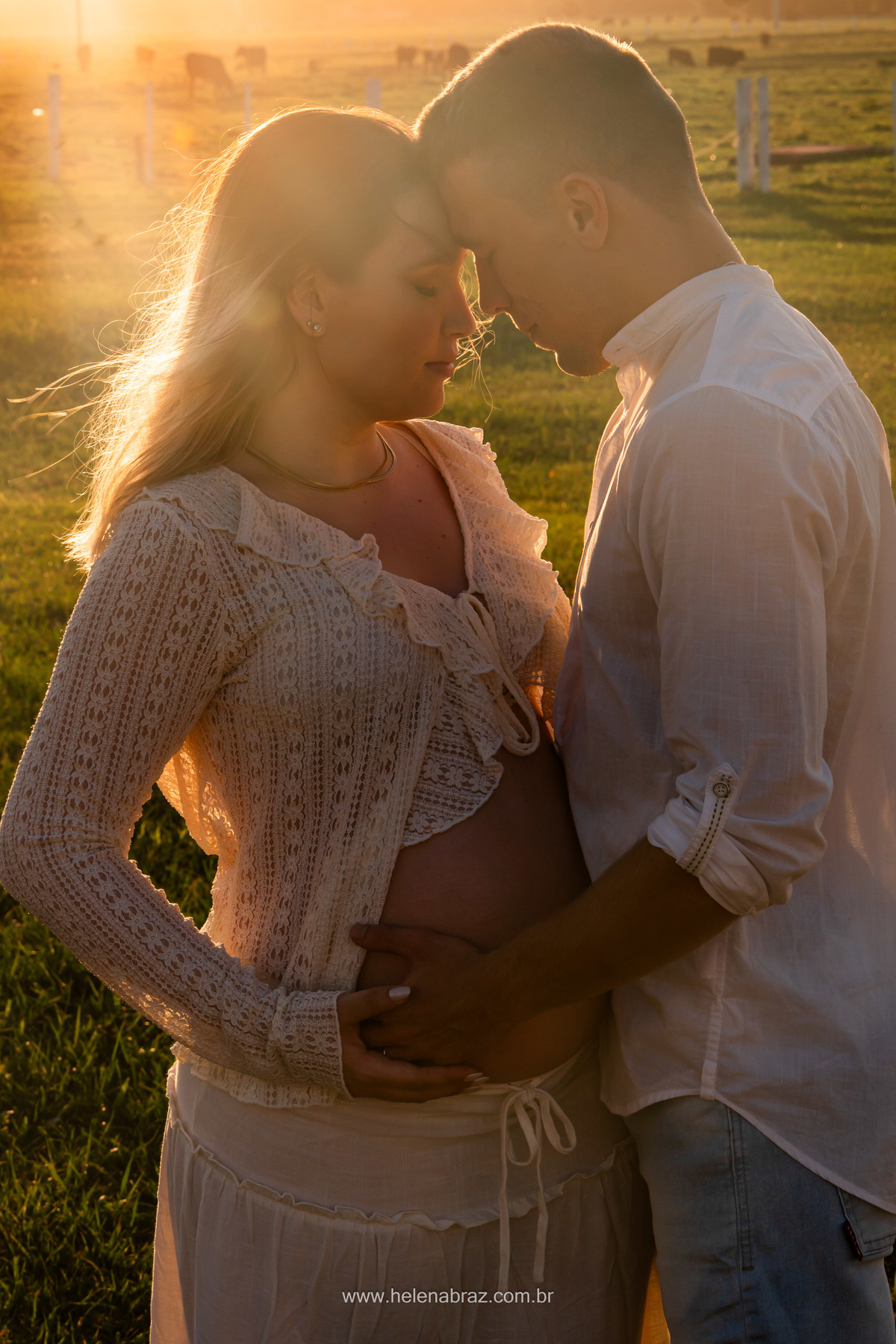 Entre o pôr do sol dourado, mãos entrelaçadas e um amor que transborda em cada olhar, a espera por você, Ana Clara, já é cheia de carinho, cuidado e promessa.